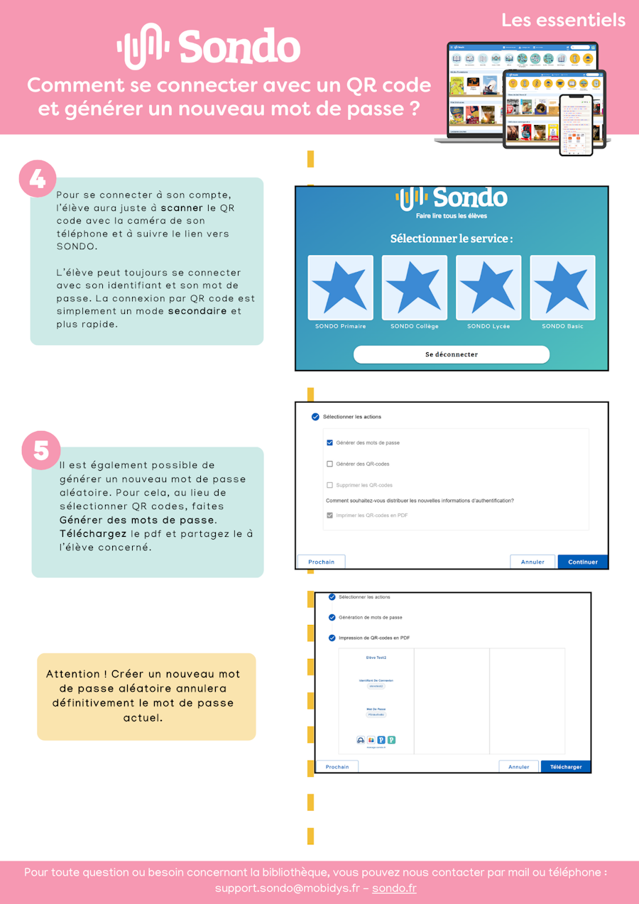 Le QR est un second mode de connexion. Il ne supprime pas le mot de passe actuel de vos élèves contrairement à la génération aléatoire d'un nouveau mot de passe.