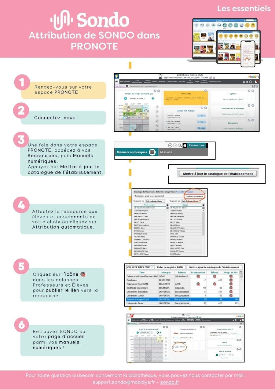 Votre établissement dispose d'un espace PRONOTE ? Pour pouvoir vous connecter à SONDO depuis PRONOTE, il faut avoir réalisé au préalable l'attribution de la ressource aux élèves et enseignants.